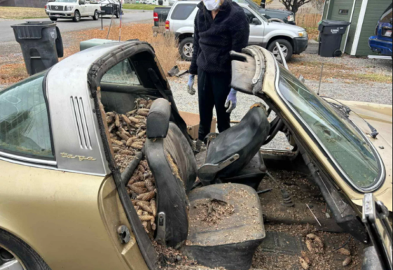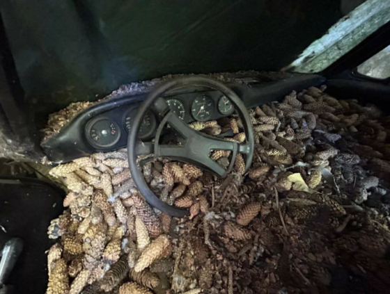 За роки простою спорткар не просто покрився шаром пилу і бруду, а буквально загруз в опалих шишках та соснових голках. Вони навіть заполонили його салон. Проникнути їм туди допомогли білки, які вирішили, що це їх особисте сховище. Один з ентузіастів вирішив викупити цей Porsche 911 Targa незважаючи на його жалюгідний стан.
