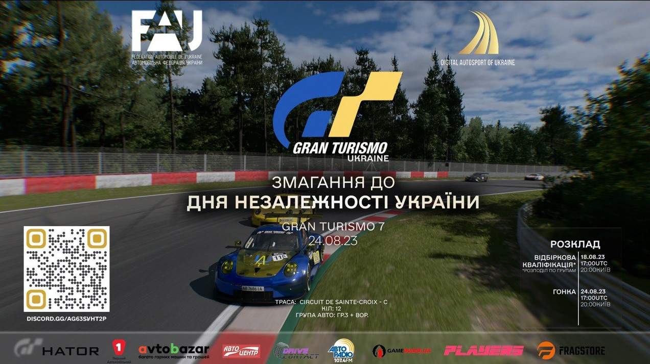 Ми проведемо ДВІ гонки 24 та 25 серпня 2023 на двох різних симуляторах: ГранТурізмо 7 та АйРейсінг .
