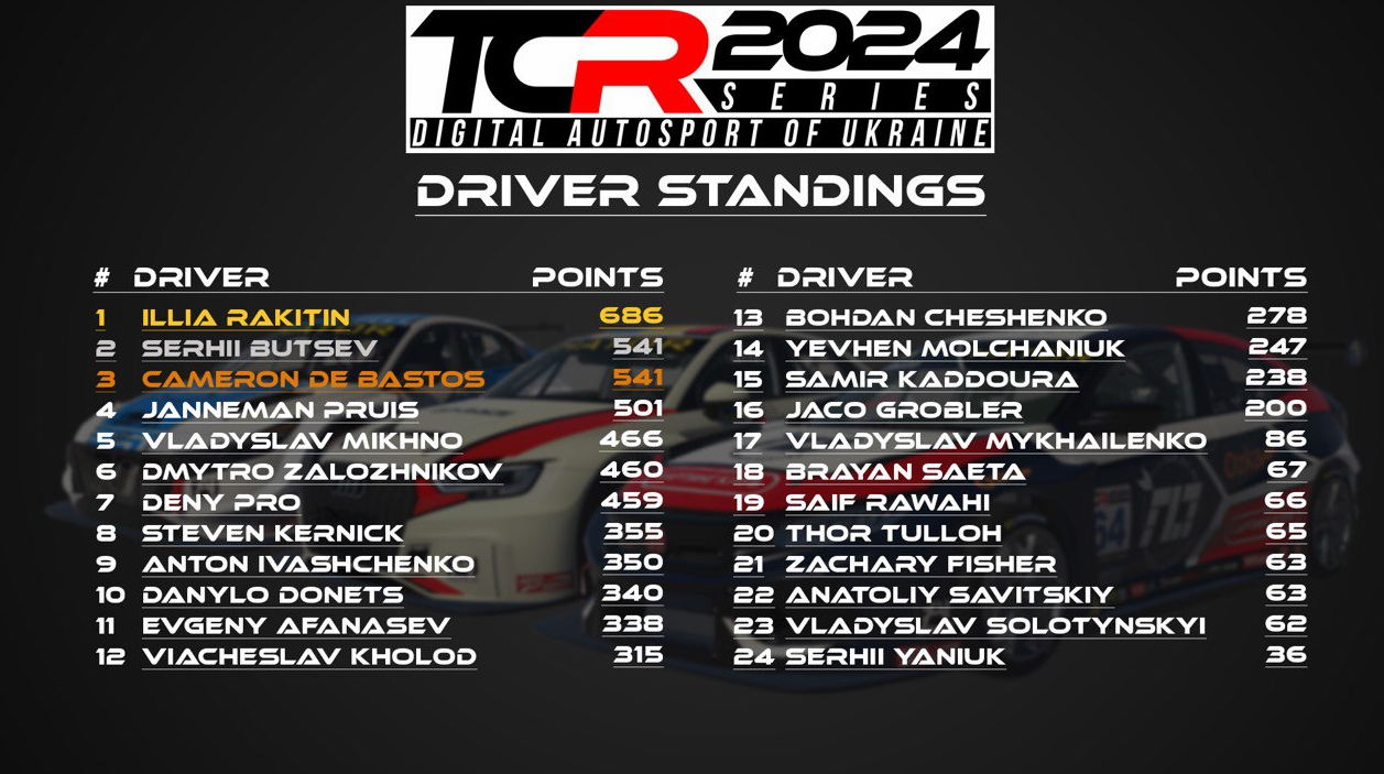29 червня 204 рокуКомісія Цифрового Автоспорту провела фінальний сьомий етап Starfall Stage Oschersleben Міжнародної Серії змагань на автомобілях класу TCR під назвою DIGITAL AUTOSPORT OF UKRAINE: TCR Series-2024 (DAU TCR Series) на симуляторі iRacing.