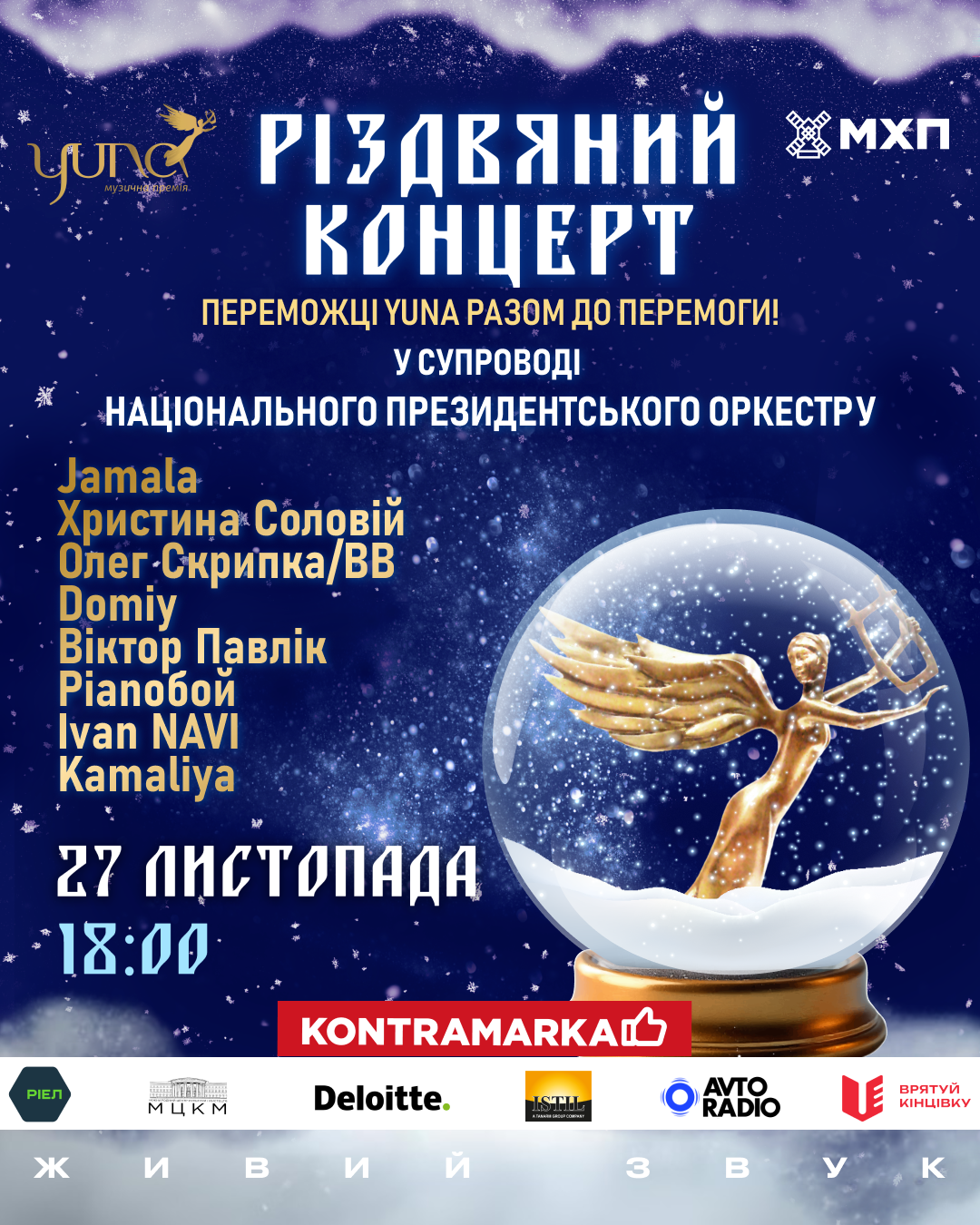 Вже 27 листопада в концертній залі МЦКМ лауреати Національної музичної премії YUNA різних років вдруге об'єднаються з Національним президентським оркестром, аби знову подарувати кожному справжнє різдвяне диво та обійми!