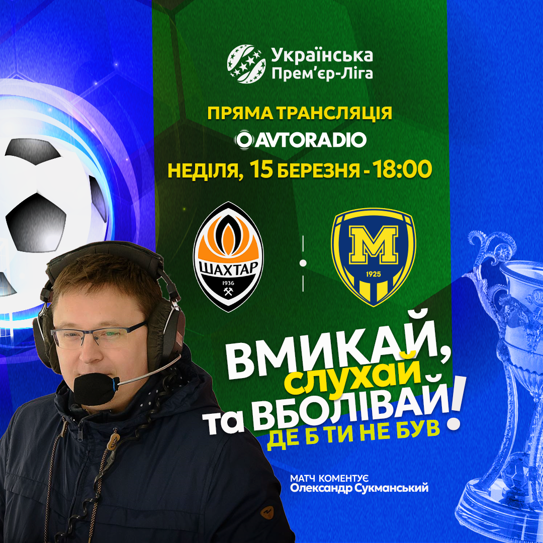 Радіотрансляцію матчу між донецьким «Шахтарем» та харківським «Металістом 1925» із коментарем Олександра Сукманського можна буде почути на «Авторадіо» та «Радіо П’ятниця», тож налаштовуйте свої приймачі правильно у неділю о 18:00.