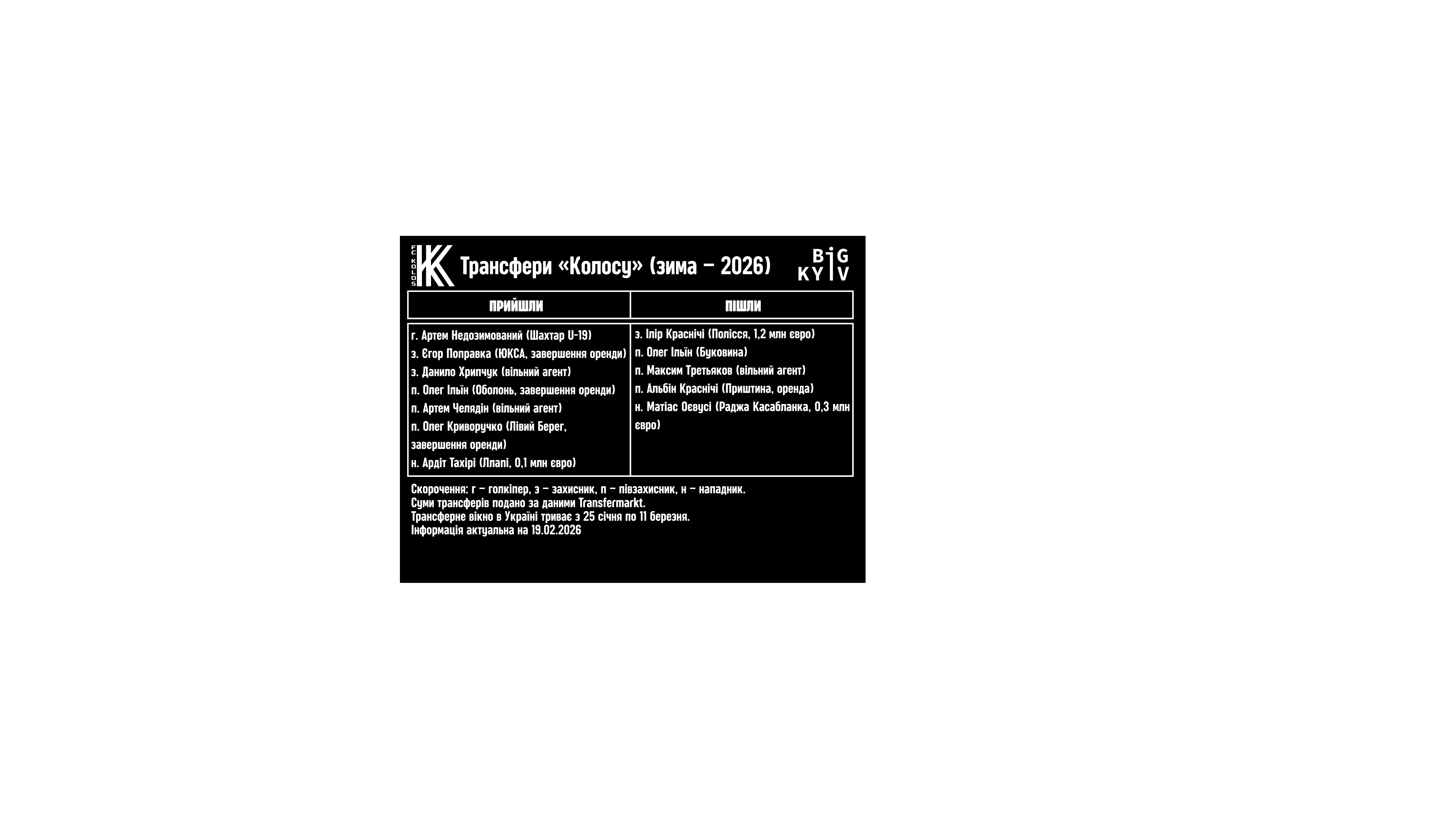 Зимова трансферна кампанія «Колосу»: