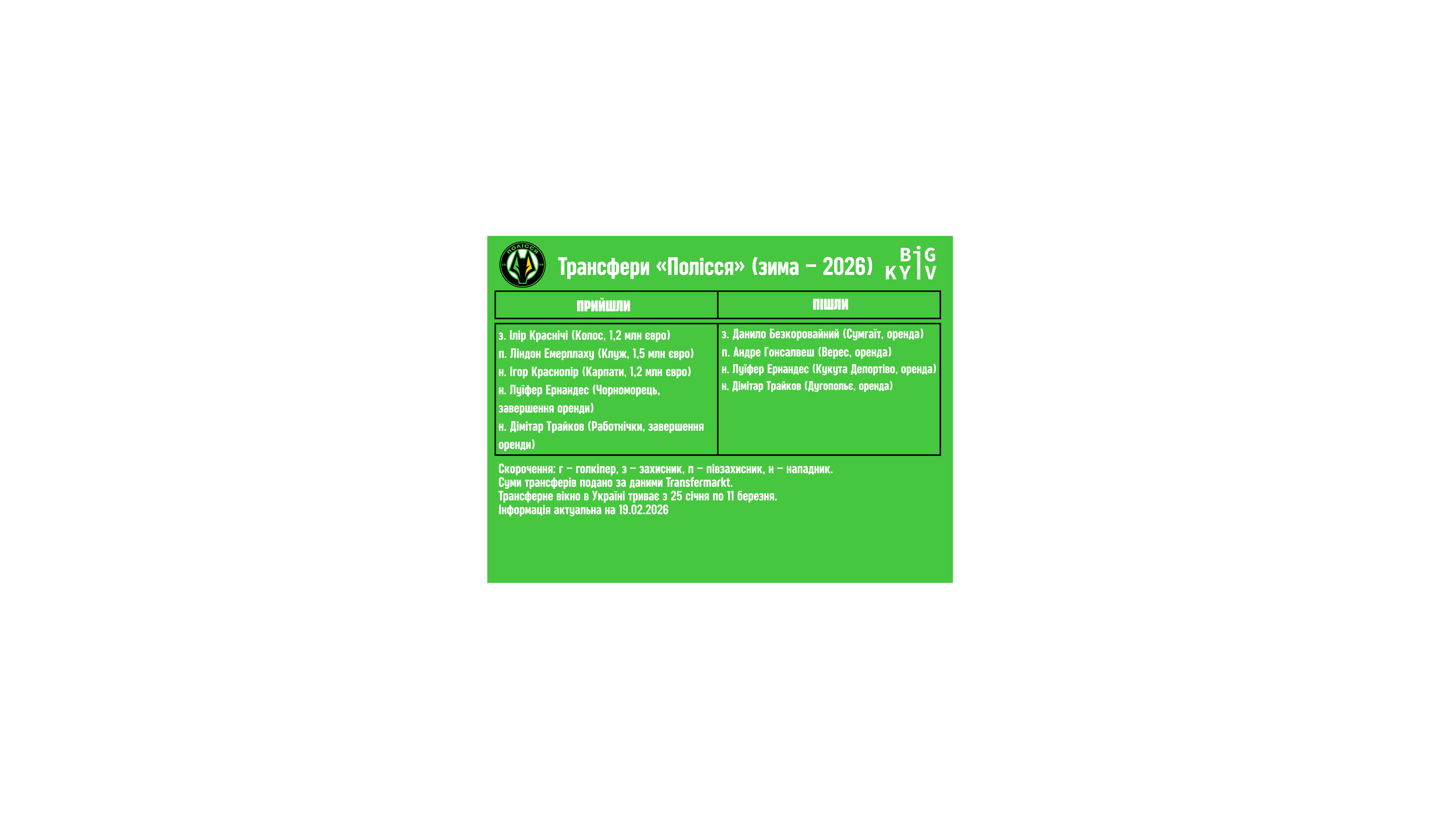 Зимова трансферна кампанія «Полісся»: