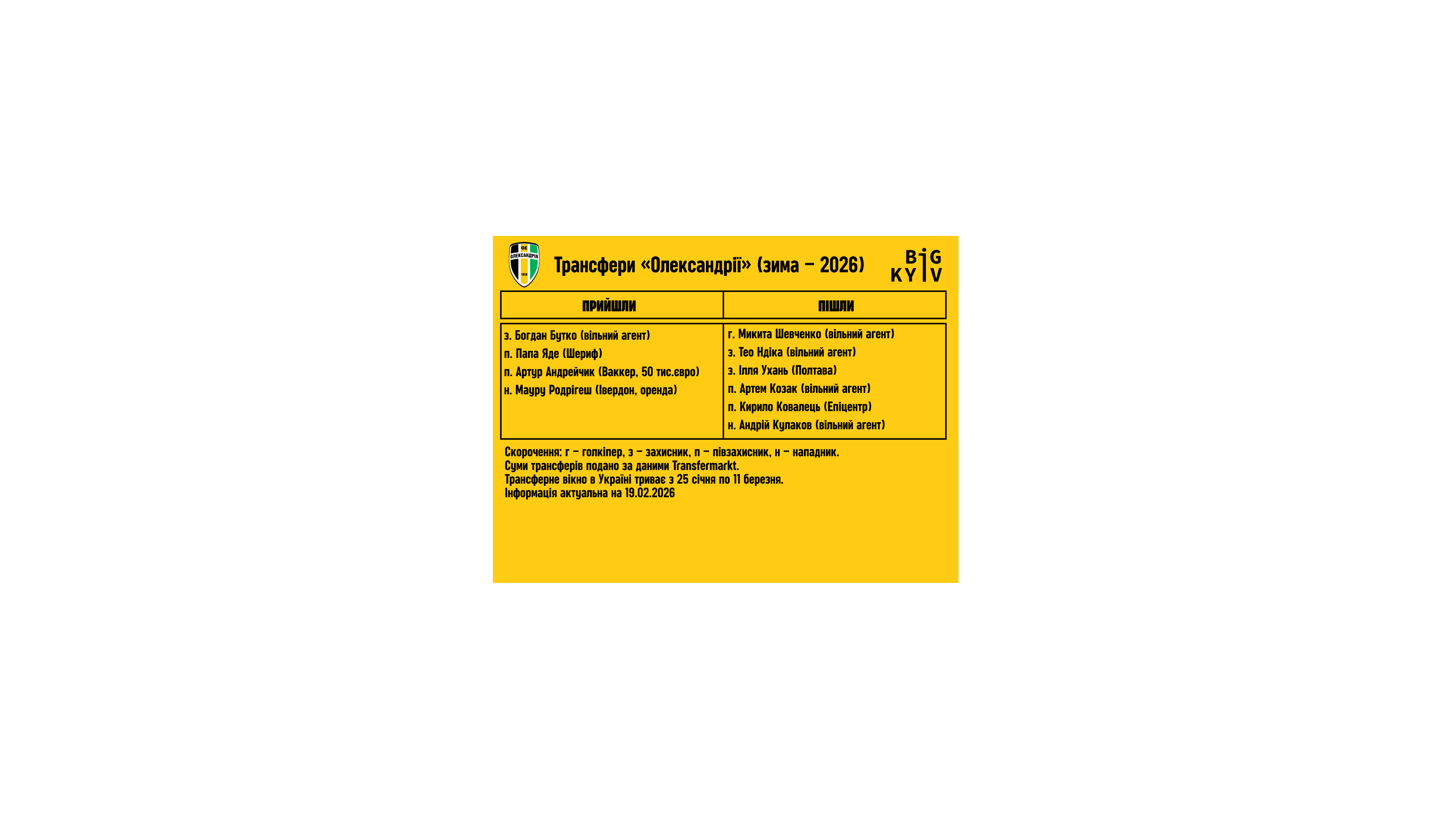 Зимова трансферна кампанія «Олександрії»:
