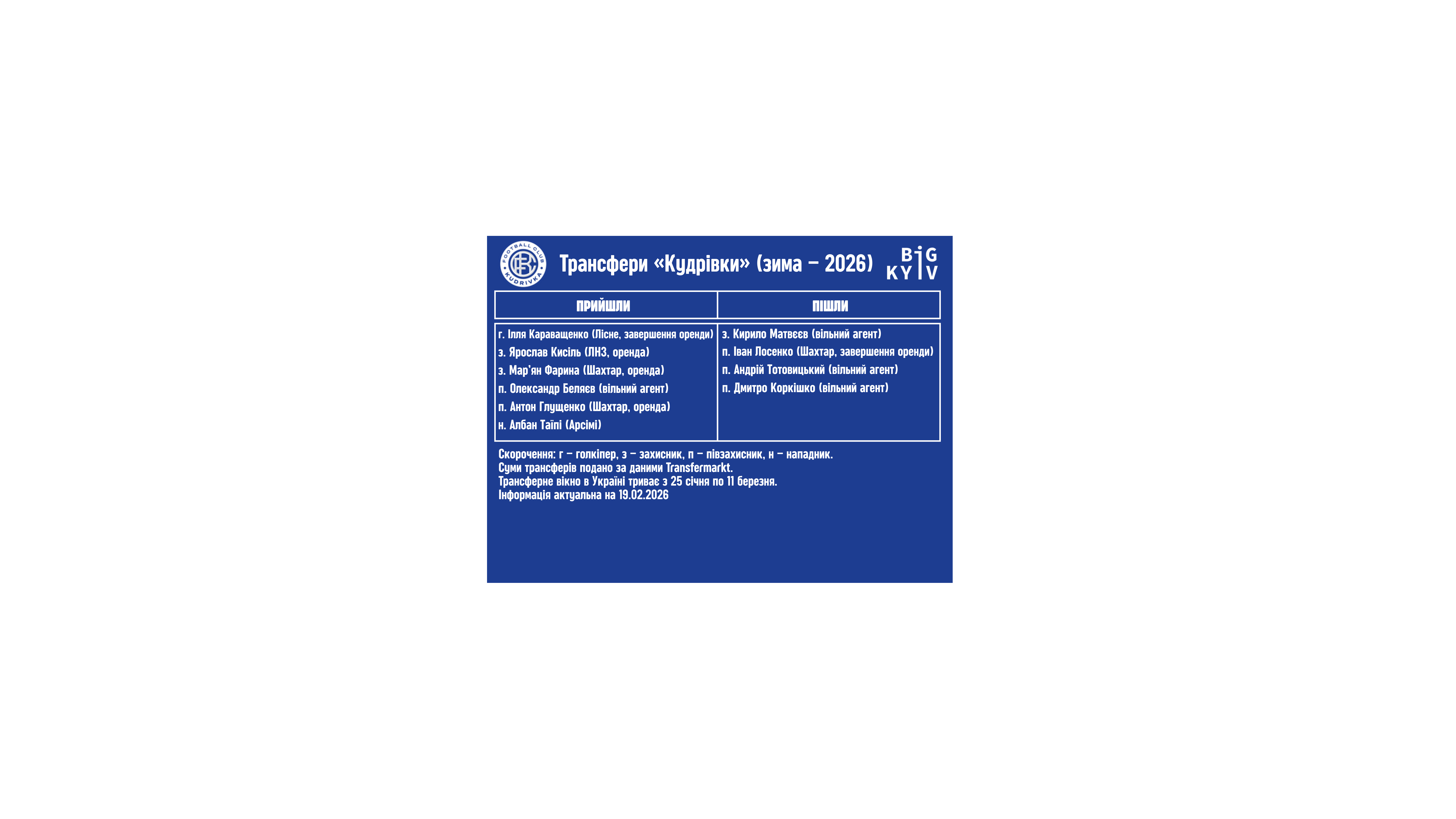 Зимова трансферна кампанія «Кудрівки»: