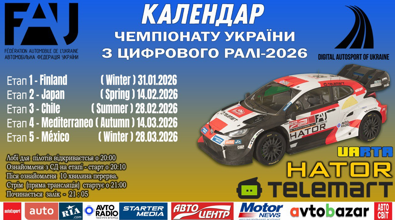 Календар змагань з цифрового ралі – 2026